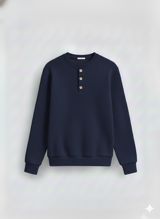 2 Pieces Waffle Knit Henley Pack (Navy & cream)