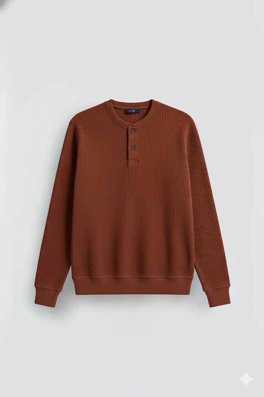2 Pieces Waffle Knit Henley Pack ( Rust + Dark Brown )