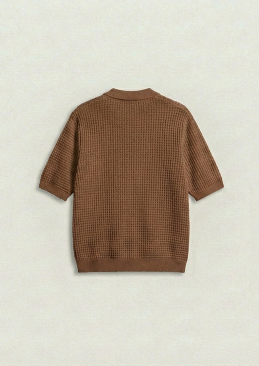 2 Piece Waffle Knit Polo T-Shirt (Black – Brown)