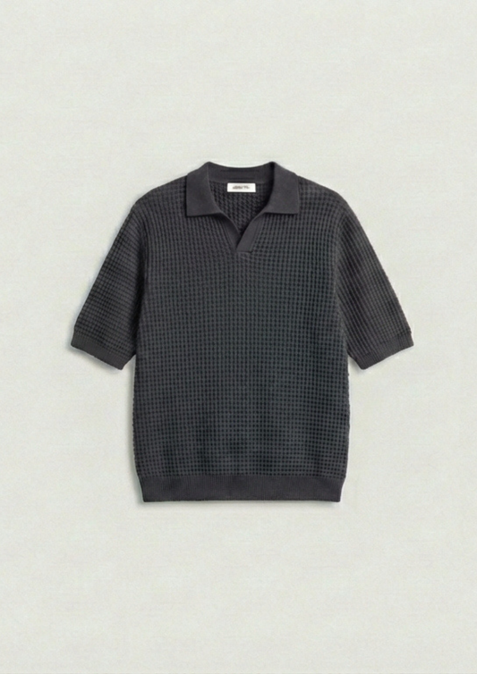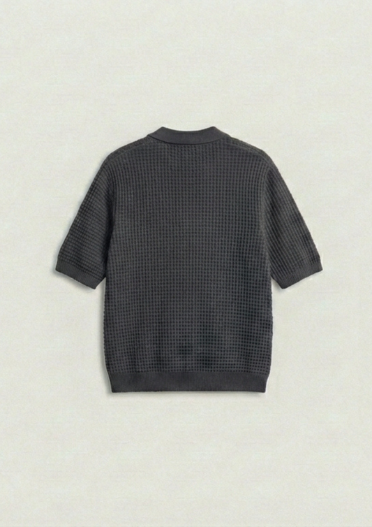 2 Piece Waffle Knit Polo T-Shirt (Black – Steel Gray)