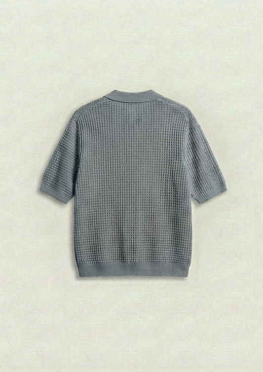 2 Piece Waffle Knit Polo T-Shirt (Cream – Steel Gray)