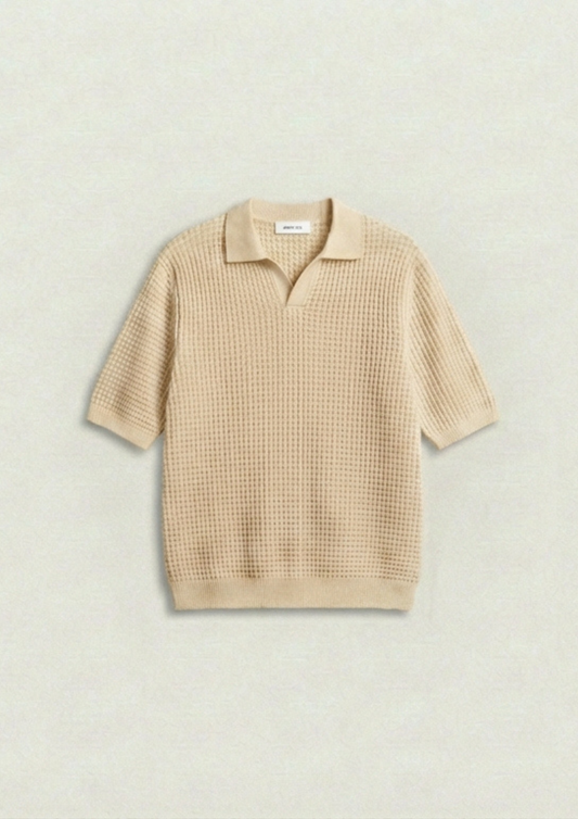 2 Piece Waffle Knit Polo T-Shirt (Cream – Brown)