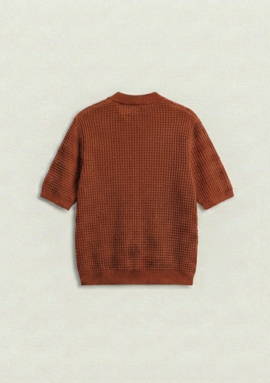 2 Piece Waffle Knit Polo T-Shirt (White – Rust)