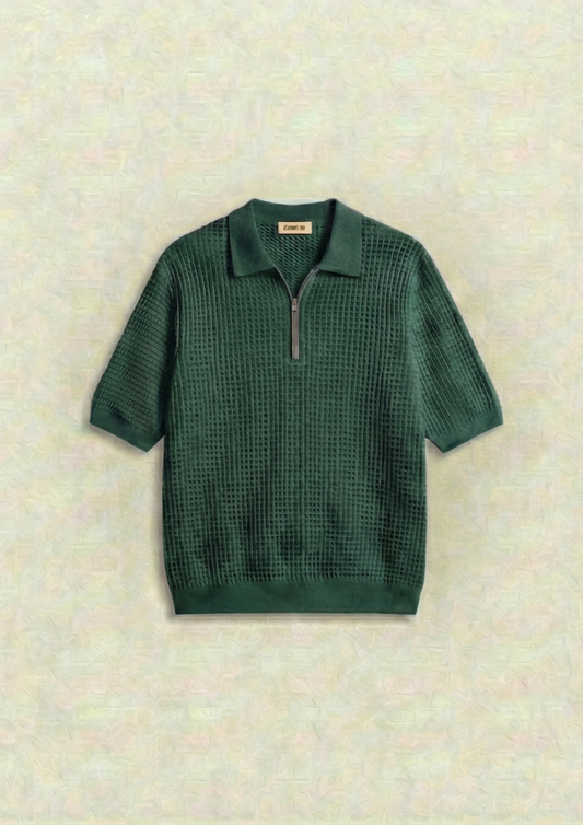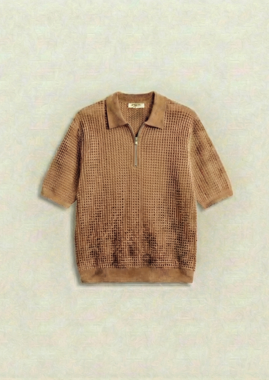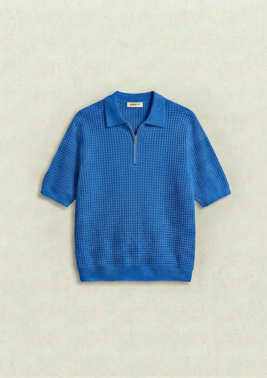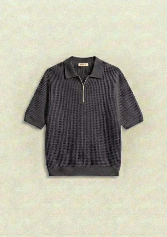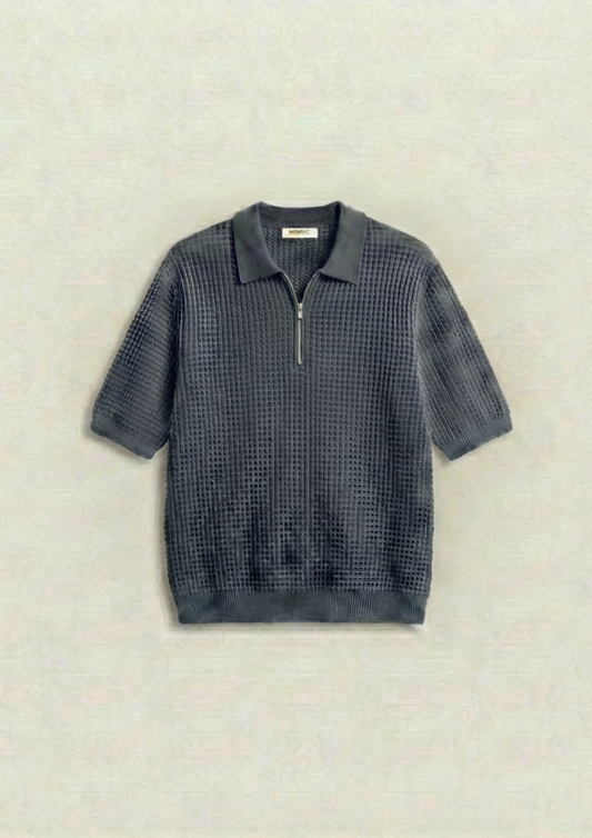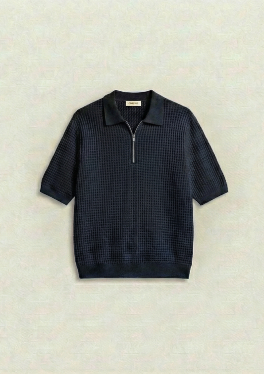 Collection: Waffle Knit Zipper Polo T-Shirts