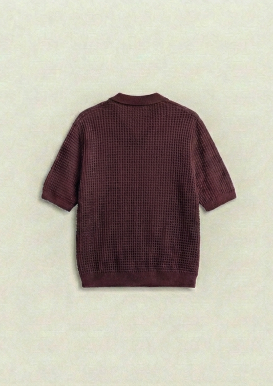 Pack of 2 – Waffle Knit Zipper Polo - (Maroon - White)
