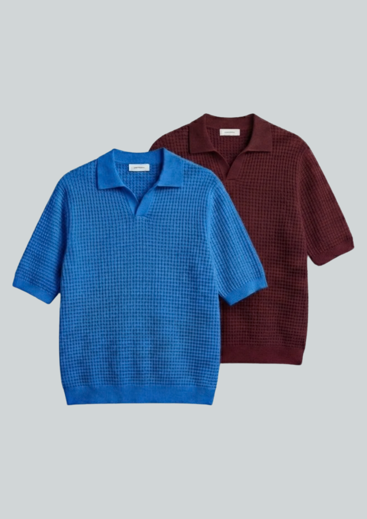 2 Piece Waffle Knit Polo T-Shirt (Dodger Blue – Maroon)