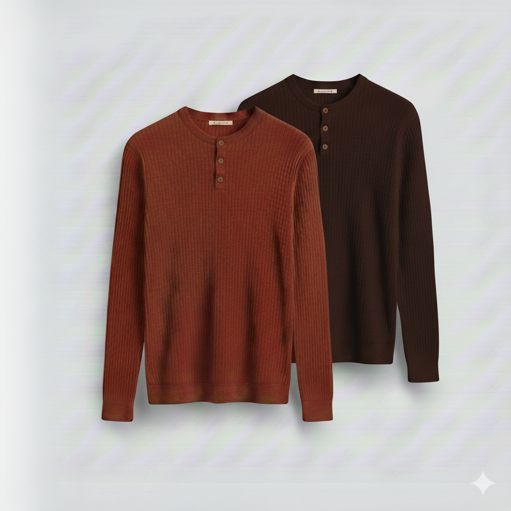 2 Pieces Waffle Knit Henley Pack ( Rust + Dark Brown )